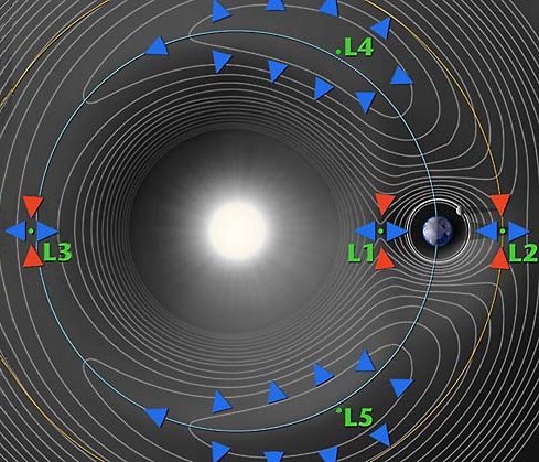 Les points de Lagrange du système Terre-Soleil.